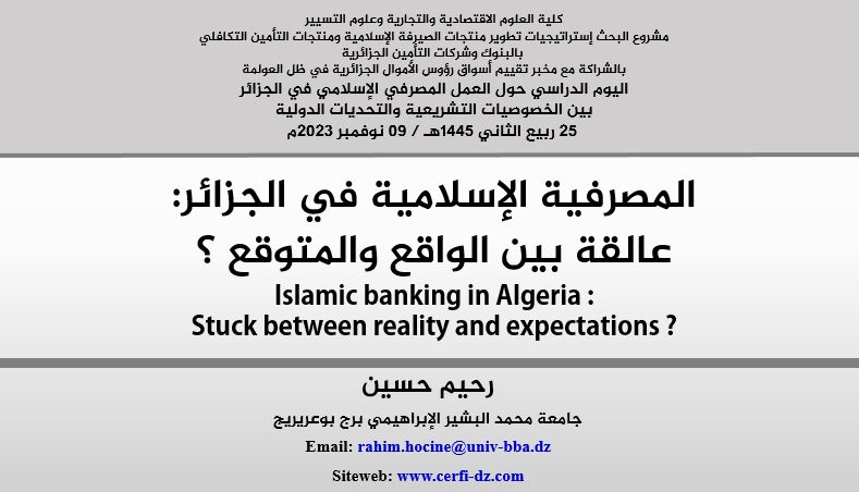 اليوم الدراسي حول العمل المصرفي الإسلامي في الجزائر بين الخصوصيات التشريعية والتحديات الدولية 25 ربيع الثاني 1445هـ ...